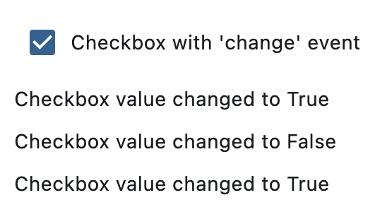 on_change(ControlEventHandler[Checkbox] | None) –Called when the state of this checkbox is changed.